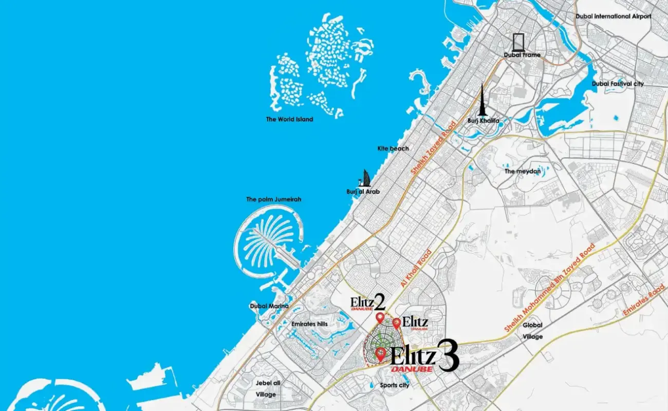 Elitz 3 is Danube Properties' latest residential development, offering studios to 3-bedroom apartments in Jumeirah Village Circle (JVC), Dubai. This high-rise development features a striking glass façade, embodying modern elegance and luxury.