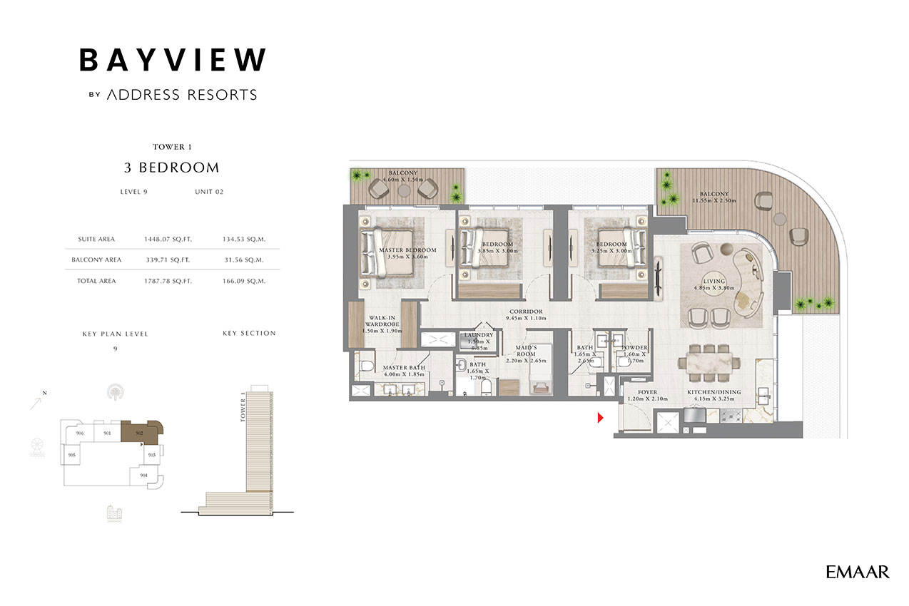 3 Bedroom 3 Bedrooms + Maid Level 1-8, Unit 02 toLevel 9, Unit 02 1507.81Sq Ft to 1808.88 Sq Ft Sq Ft Apartment