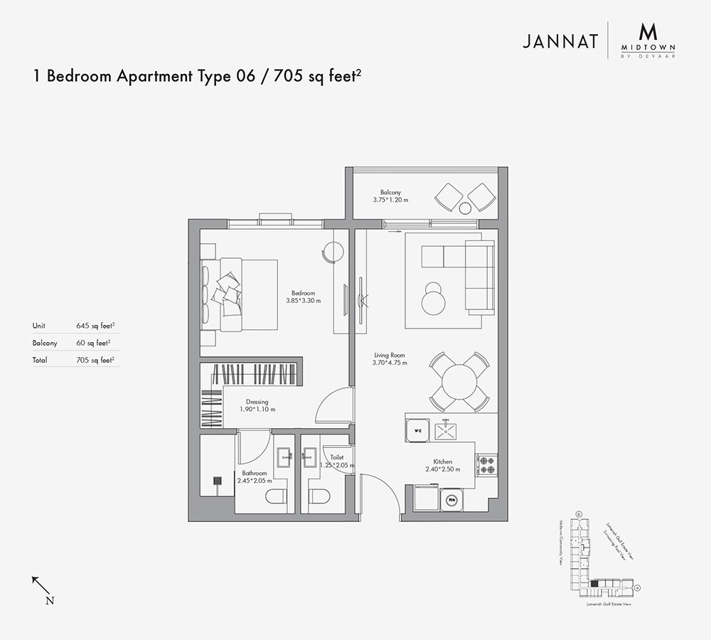 Jannat at Midtown by Deyaar is a newly launched luxury residential development located in the heart of Dubai's growth corridor. This vibrant community offers a range of luxury studios, 1, 2, and 3-bedroom apartments, each designed with exclusive amenities to provide a contemporary living experience. Spanning across 5.5 million square feet, Jannat is part of the signature Midtown township, which is divided into four distinct districts, all designed to enhance urban living and provide residents with a modern, dynamic lifestyle.