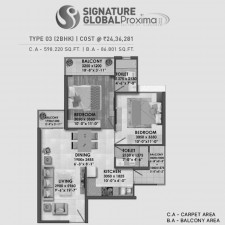 Signature Global Proxima Phase 2 offers 2 BHK apartments, available in two sizes: