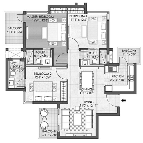 | Adani M2K Oyster Grande 3BHK Apartment | 1,699 sq.ft. | Rs. 2.25 Cr onwards |
