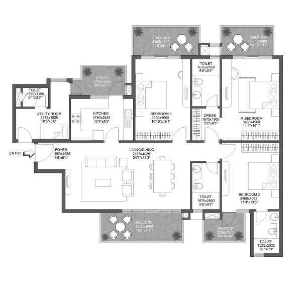3BHK Apartment 1,505 sq.ft. Rs. 1.65 Cr