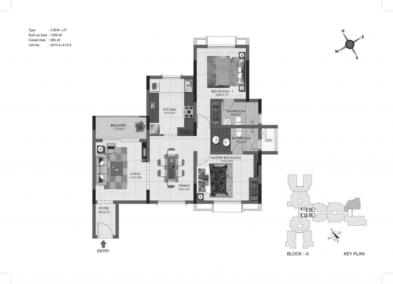 865 Sq. Ft to 1529 Sq. Ft (Saleable) sq.ft -