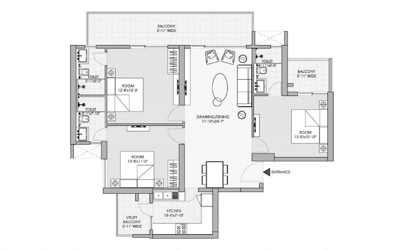 | M3M Skycity 3BHK Apartment | 1,800 sq.ft. | Rs. 3.03Cr onwards |