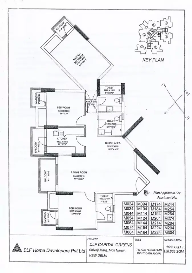 *DLF Capital Greens 1 and 2 Moti Nagar has 23 towers, with 26 floors each and 2856 units on offer.